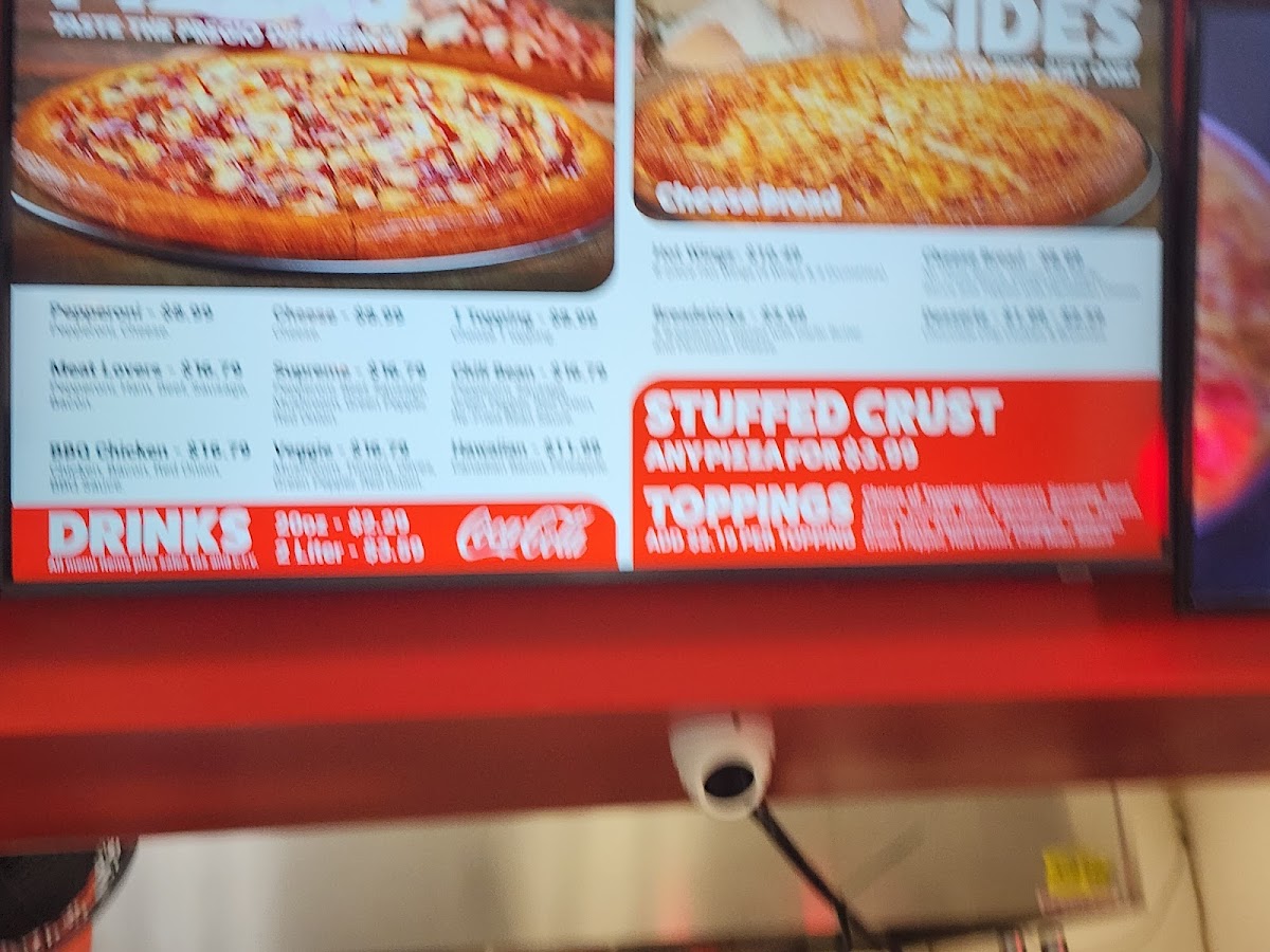 Our classic 14” Pizza with our Non-GMO Pizza Sauce made from Fresh Vine-Ripened Tomatoes.” Our two-cheese blend of Mozzarella Cheese and a generous portion Of Real Diced Bacon.